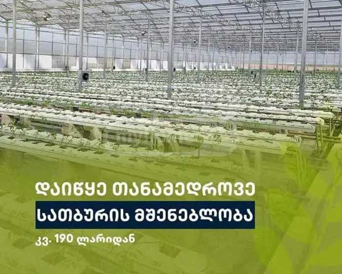 სათბური 7200კვ, მიწა 22500კვ. იდეალური ადგილი კოკაკოლასთან ახლოს.ფასში შედის ველაფერი: მიწა 22500კვ, სათბური 7200კვ, მზის სადგური 120კილოვატი, საწყობი 600 კვ და ყველა თანამედროვე აღჭურვილობა.