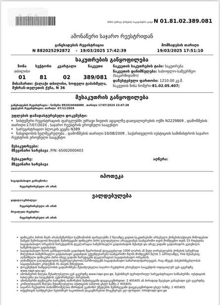 იყიდება 1000 კვ.მ. მიწა ტაბახმელაში , რომელზეც დამტკიცებულია გრგ და მიმდინარეობს მშენებლობის ნებართვის დამტკიცებაც. კომუნიკაციები შეყვანილია ნაკვეთზე და გამრიცხველიანება დასრულებულია. გრგ-ს მიხედვით დადგენილი პარამეტრები: 1. შენობის განთავსებისთვის წითელი ხაზიდან მიჯნა შეადგენს 3 მ. 2. კ1=0.3; კ2=1.0; კ3=0.6 3. შენობის მაქსიმალური სიმაღლე: გრუნტის ზედაპირიდან 12 მ. 4. ღობის მაქსიმალური სიმაღლე 2.2 მ. (დახურული ნაწილი 1.8 მ. ღია 0.4 მ.) საკადასტრო კოდი: 81.02.39.364