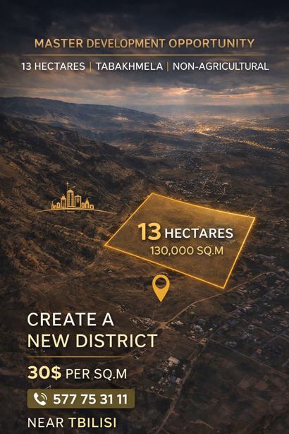 🌍 იყიდება ტაბახმელაში 13 ჰექტარი დანიშნულება - არასასოფლო ზოგი მიწა იყიდება. ზოგი მიწა ვითარდება. და ზოგ მიწას — შეუძლია ახალი უბანი შექმნას. ✅თბილისთან ახლოს ✅ტაბახმელა — მზარდი პრემიუმ მიმართულება ✅13 ჰექტარი ერთიანი მასივი ✅არასასოფლო დანიშნულება — განვითარების სრული თავისუფლება 130,000 კვადრატული მეტრი ნიშნავს, რომ ეს აღარ არის კერძო ნაკვეთი, ეს არის პროექტი. აქ შეიძლება: ▪️ დახურული ვილების კომპლექსი ▪️ პრემიუმ რეზორტი ▪️ მრავალფუნქციური საცხოვრებელი უბანი ▪️ სამედიცინო / საგანმანათლებლო სივრცე ▪️ ინვესტიციური მასშტაბური დეველოპმენტი ტაბახმელა უკვე აღარ არის უბრალოდ “ადგილი ქალაქის გარეთ” — ეს არის მიმართულება, სადაც გადადის მაღალი სეგმენტის მოთხოვნა. 💰 ფასი: 30$ / კვ.მ 📐 ფართობი: 13 ჰექტარი (130,000 კვ.მ)
