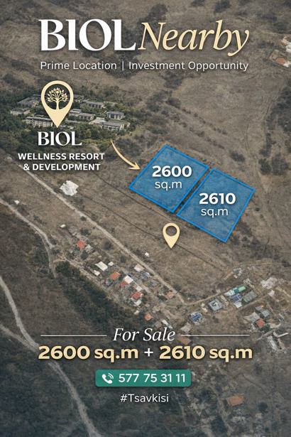 📍იყიდება წავკისში “ბიოლი რეზორტ”- თან 📐 5210 კვ/მ (ორი გაერთიანებული ნაკვეთი – 2600 + 2610 კვ/მ) 💵 : 130$ თუ ეძებთ მასშტაბურ მიწას პრემიუმ ლოკაციაში – ეს შეთავაზება თქვენთვისაა 👇 ✔️ იდეალურია კოტეჯების კომპლექსისთვის ✔️ შესაძლებელია ბუტიკური ველნეს/ტურისტული პროექტი ✔️ მაღალი კლასის საცხოვრებელი ზონის განვითარებისთვის საუკეთესო ადგილი BIOL-ის ბრენდი და სტატუსი ამ ტერიტორიას სტაბილურ საინვესტიციო გარემოდ აქცევს 📈 📲 დამატებითი ინფორმაცია: #Tsavkisi #BioliArea #LuxuryInvestment #DevelopmentLand #PremiumProperty #GeorgiaRealEstate