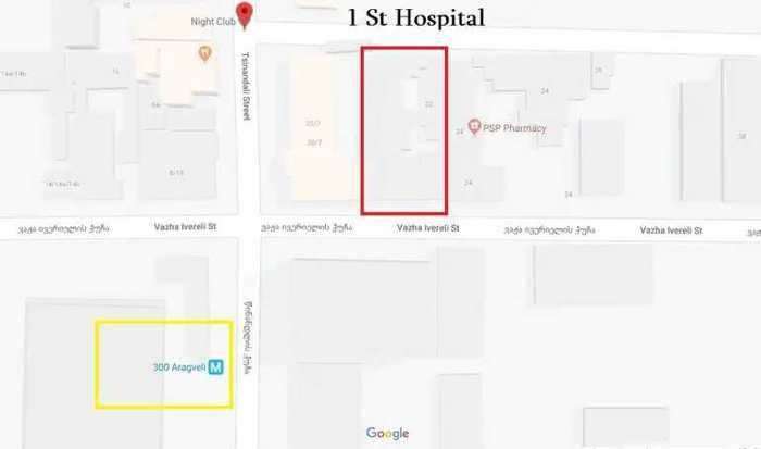 იყიდება მეტრო 300 არაგველთან 50 მეტრში, ვაჟა ივერიელის ქუჩაზე, პირველი კლინიკური საავადმყოფოს (არამიანცის) მიმდებარე ტერიტორიაზე, არსებული იტალიური ეზო, სადაც შესაძლებელია აშენდეს მცირე ზომის კორპუსი, კერძო კლინიკა, სასტუმრო, სავაჭრო ცენტრი ან კერძო სახლი. ეზოს უკანა მხარე ესაზღვრება არამიანცის საავადმყოფოს და შესაძლებელია აშენდეს კერძო კლინიკაც. მიწის ნაკვეთის ფართი რეესტრის მიხედვით არის 518 მ², ეზოში საცხოვრებელი ფართი არის 555 მ². ეზოს წინა ნაწილი არის 2 სართულიანი სახლი. ეზოში მაცხოვრებელი ხალხი უნდა დაკმაყოფილდეს ბინებით ან თანხით.
