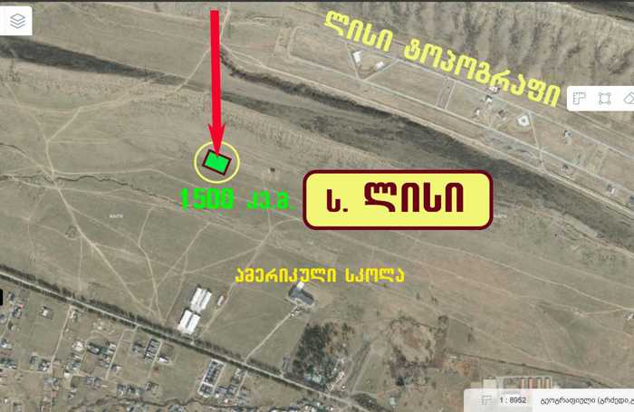 იყიდება საუკეთესო ადგილას ლისის ტბასთან „ლისი ტოპოგრაფის“ და ამერიკულ სკოლას შორის 1500 კვ.მ. მიწის ნაკვეთი იდეალური ფორმით 47x32.