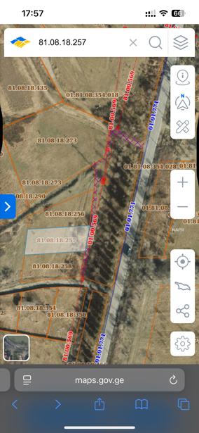 ნაკვეთი ერთად მონიშნულის მარკვნივ და მარცხნივ 1500 კვ ჯამში 4500 კვ
