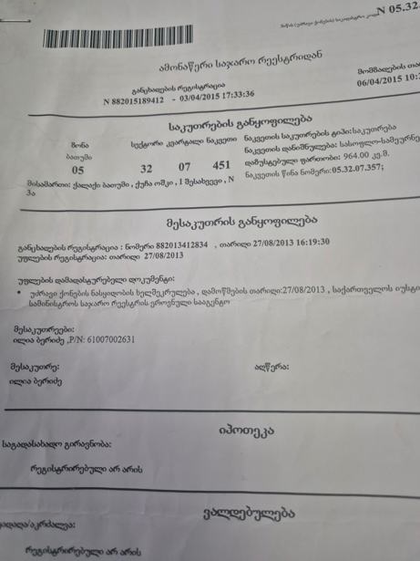 იყიდება მიწის ნაკვეთი 964 კვ.მ ფართობით. ნაკვეთი გამოირჩევა მოსახერხებელი მდებარეობით და შესასვლელად დამონტაჟებულია მეტალის ჭიშკარი, რაც უზრუნველყოფს უსაფრთხოებასა და კომფორტს. ფართობი იდეალურია სხვადასხვა დანიშნულებისთვის, როგორც საცხოვრებელი, ასევე კომერციული პროექტებისთვის. ნაკვეთი თავისუფალია შენობებისგან და მზად არის ახალი მფლობელის იდეებისთვის. ეს არის უნიკალური შესაძლებლობა მათთვის, ვინც ეძებს სივრცეს საკუთარი სურვილების რეალიზებისთვის მშვიდ და პერსპექტიულ გარემოში.