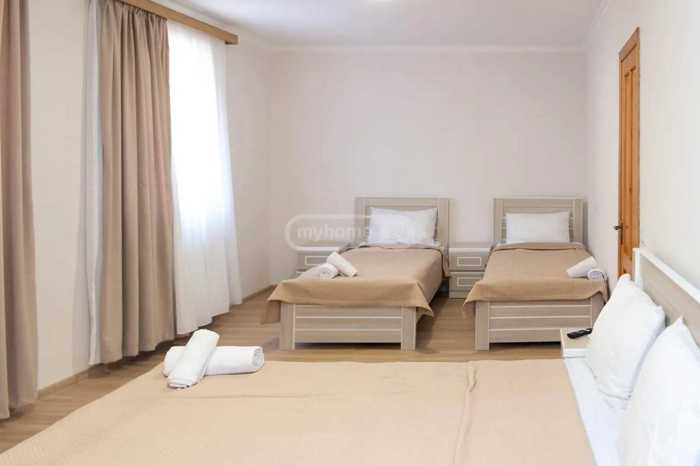იყიდება ახალი აშენებული სასტუმრო, რომლის საერთო ფართობი შეადგენს 325 კვ.მ-ს. შენობაში განთავსებულია 6 ოთახი, რაც იდეალურ შესაძლებლობას ქმნის სხვადასხვა დანიშნულებისთვის. სასტუმრო მდებარეობს ახალ შენობაში და გამოირჩევა თანამედროვე მდგომარეობით. სივრცე უზრუნველყოფს კომფორტულ და მყუდრო გარემოს სტუმრებისთვის. ახალი შენობა ქმნის განსაკუთრებულ ატმოსფეროს და საშუალებას გაძლევთ დაიწყოთ საქმიანობა დაუყოვნებლივ, დამატებითი სარემონტო სამუშაოების გარეშე. ეს არის უნიკალური შანსი მათთვის, ვინც ეძებს ახალ, ხარისხიან და ფუნქციურ კომერციულ ფართს სასტუმროს ბიზნესისთვის.
