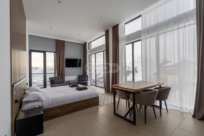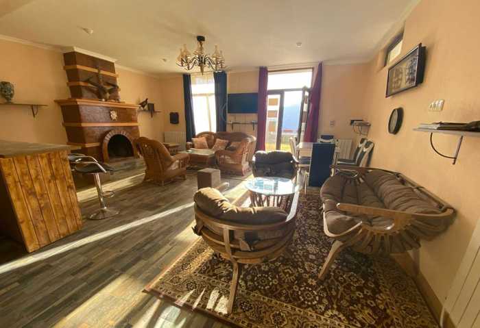 იყიდება სრულად აღჭურვილი სასტუმრო 25 პერსონაზე გათვლილი, საუნით, სამზარეულოთი, სასადილო ოთახით, მოსასვენებელი ოთახით, სამრეცხაოთი, სქი დეპოთი, პერსონალის დასაძინებელი ოთახით, საერთოო ფართი 280 მ2.