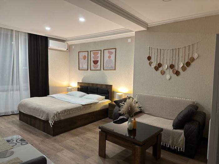 ქირავდება დღიურად, სტუდიოს ტიპის აპარტამენტი. იზოლირებული შესასვლელი, სამზარეულო, სააბაზანო, სარეცხის მანქანა, აივანი და საპარკინგე სივრცე. თავსდება 2+1 პერსონა. ადგილზე დაგხვდებათ ყველა საჭირო ინვენტარი და ნივთი.