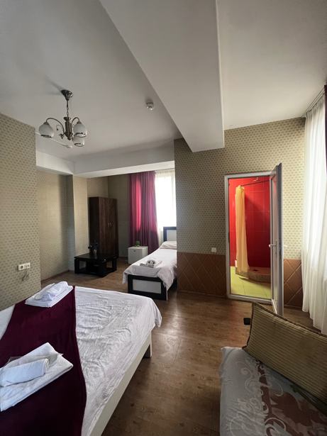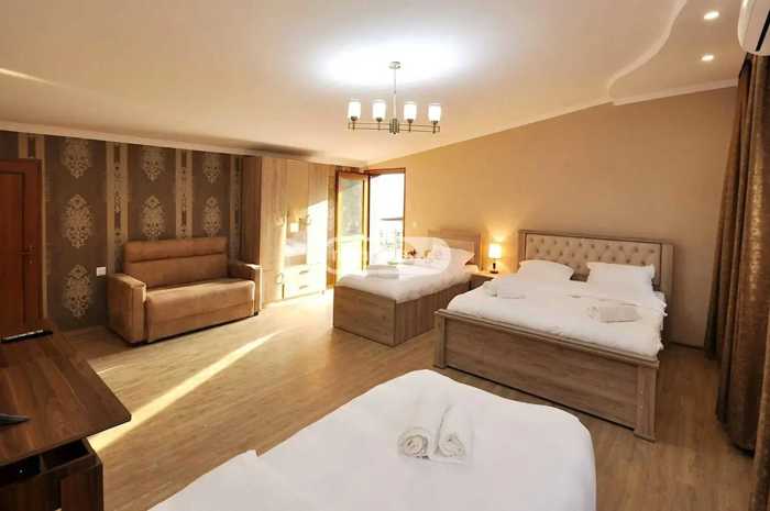 ქირავდება ათ ნომრიანი, 33 ადამიანზე მორგებული ევროპული დონის ოთხ სართულიანი სასტუმრო. თითოეული ნონერი აღჭურვილია სველი წერტილებით, ინტერნეტით, კონდიცირების სისტემით, ცენტრალური გათბობითა და კომფორტული ავეჯით.