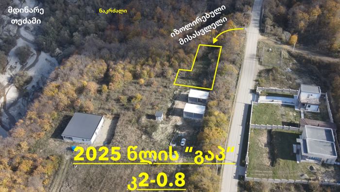 არასასოფლო სტატუსის 751 მ^2 კერძო სახლის მშენებლობის უფლებით კ2 - 0.8 კომუნიკაციები ნაკვეთთან. ბუნებაში, მდინარის სიახლოვეს საუკეთესო ადგილას მიწა ახალ დასახლებაში. საგურამოდან 5-7 წუთი. იყიდება სასწრაფოდ შეზღუდული პერიოდით! ✅გაპი კ2 - 0.8 ✅არასასოფლო ✅ მაღალმთიანის სტატუსი ✅ასფალტიანი გზა ✅მდინარე ✅ნაკრძალი ✅კომუნიკაციები