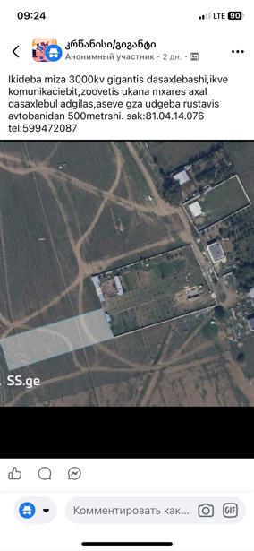 იყიდება მიწის ნაკვეთი გიგანტის დასახლებაში,თბილისიდან 15 წუთის სავალზე,კრუგში მოსახლეობა არის,მიმდინარეობს აგრეთვე ახალი მშენებლობები