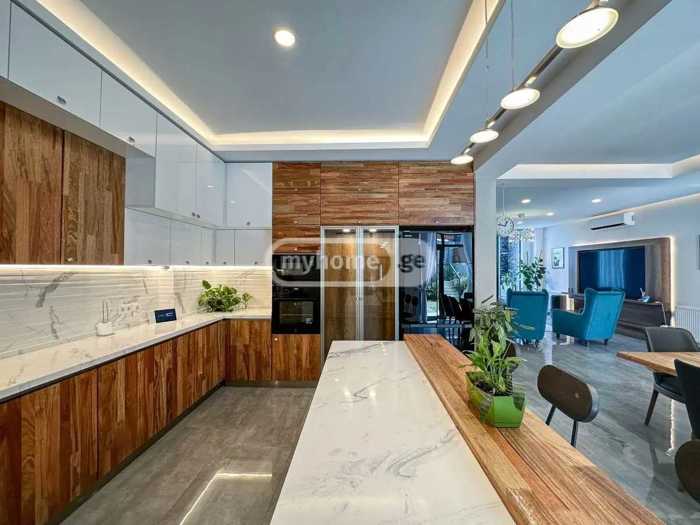 ეს არის უნიკალური თანამედროვე დიზაინის ჭკვიანი კერძო სახლი, რომელიც მოიცავს: ორ საცხოვრებელ ზონას, 5 საწოლიან ოთახს, აუზს, საუნას, წინა და უკანა ეზოს შიდა პარკინგით ორი მანქანისთვის. სკოლებიდან 5 წუთის სავალზე. იდეალურად მდებარეობს კაკლებს და წყნეთს შორის. აშენებულია ესპანური ფილებით, იატაკის გათბბით და Roca-ს აქსესუარებით. ყველა კარი და კარადა დამზადებულია ნამდვილი . სამივე სართულს აქვს ცალკე ბუხარი. სპორტული დარბაზი და სასწავლო/მოახლის ოთახი. აუზი მოზაიკის დიზაინით და გარე საშხაპე. სახლი მთლიანად აღჭურვილია მაღალი კლასის ავეჯით, ცალკე ბარი და სამზარეულოთი, კინოს ოთახი პროექტორით. ყველა ფანჯრის საფარი ესთეტიურად შესრულებულია იმპორტირებული ფარდებით, წინა და უკანა ეზოს ავეჯის ჩათვლით. Mian ტერასას აქვს ულამაზესი ჩანჩქერი და ორივე ლაუნჯს აქვს 85 და 70 დიუმიანი LED ტელევიზორები და მე-3 LED ტელევიზორი მბრუნავი კედლით მოთავსებულია მთავარ საწოლ ოთახში. აღჭურვილია ორთქლის საუნა და სპორტული დარბაზი. მეპატრონისა და სტუმრების აბანოები აღჭურვილია როგორც საშხაპე, ასევე ჯაკუზის აბანოებით. ფართომასშტაბიანი ღია სამზარეულო აშენებული ნამდვილი ხით და ყველა აქსესუარით/აღჭურვილობით, მათ შორის ჩაშენებული მიკროტალღური ღუმელით, გაზქურით, ორკარიანი მაცივრით და ჩაშენებული ჭურჭლის სარეცხი მანქანასთან ერთად ცალკე, დახურულ სამუშაო სამზარეულოსთან ერთად. კონცეპტუალურად შემუშავებული, დივერსიფიცირებული და კომფორტული ჭკვიანი ვილა, აშენებული მაღალი ხარისხისა და ესთეტიკის გათვალისწინებით, რომელიც ქმნის ჰარმონიის განცდას და საუკეთესო ადგილს საღამოს განტვირთვის, რაც დაუვიწყარია. • სტატუსი: საკუთარი სახლი • აშენებული საცხოვრებელი ფართის ზომა (კვ.მ): 312 • ეზოს ფართობი: 200 (კვ.მ) • სართულები: 3 • ოთახები: 8 (საძინებელი 5) • სველი წერტილები: 5 • სამზარეულო: 2+1: დიახ • სრულად აღჭურვილი 3 LED-ით • მდგომარეობა: ახალი აშენებული და გარემონტებული • გათბობის იატაკი: დიახ. • საცურაო აუზი გათბობით: დიახ • ორთქლის საუნა: დიახ • აივანი: დიახ • ვერანდა: დიახ • საცავი, სარდაფი, ცალკე საკუჭნაო/სამრეცხაო. • ტელეფონი: დიახ • კონდიციონერი: დიახ • ცხელი წყალი, ცენტრალური გათბობის სისტემა: კი • გათბობა, ცენტრალური გათბობის სისტემა: კი • ინტერნეტი: დიახ • ავეჯი დიახ • გარდერობი: დიახ • ბუხარი (3) • ეზო: კი • პარკინგი, პარკინგი • აუზი: დიახ