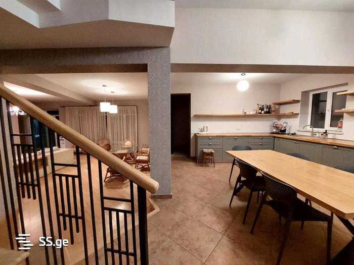 ქირავდება ულამაზესი სახლი, 2 შესასვლელი კარით, 5საძინებლით, 3სველი წერტილით, საგარდერობე ოთახებით, კაბინეტით, დახურული აუზით( ფილტრაციისა და გათბობის სისტემით), მინუს სართულზე კეთილმოწყობილი სარდაფითა და დამატებითი საძინებლით( სველი წერტილითურთ), ულამაზესი, 2300 კვ მ ხეხილიანი ეზოთი.