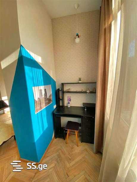 ქირავდება თბილისურ ეზოში, ცენტრალურ ადგილას 2 ოთახიანი ბინა, პატარა დამატებითი სამუშაო/სამეცადინო ოთახით. ბინა მდებარეობს ფილარმონიიდან 5 წუთის სავალზე, მეტრო "რუსთაველიდან" 500 მეტრში. გარშემო არის მარკეტები, სკოლა, საბავშვო ბაღი, კაფე "ანტრე", რესტორანი "ზალა", "ლოლიტა". ბინა არის იზოლირებული, ძალიან დიდი ეზოთი, სადაც შესაძლებელია მანქანის დაპარკინგება. ბინა მდებარეობს ეზოს შიდა მხარეს, შესაბამისად არის მშვიდი ადგილი. რემონტი გაკეთდა რამდენიმე წლის წინ. ბინა უზრუნველყოფილია ავეჯით: ორკაციანი ლოგინი, უდიდესი კარადა, კომოდი, გამოსაშლელი ტახტი, მაგიდა, სამუშაო/სამეცადინო მაგიდა, მაცივარი, სარეცხი მანქანა, მტვერსასრუტი, ჭურჭელი. პირდაპირ შესაძლებელია შესვლა და ცხოვრება. ეზო არის ძალიან მშვიდი, უყურებს ანძას.