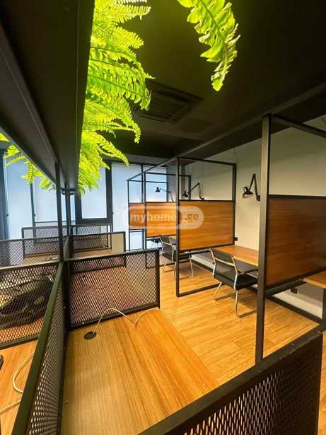 საოფისე ფართი დაგეგმარებულია საერთო სამუშაო სივრცის მოწყობისთვის და სრულად არის აღჭურვილი კომფორტული მუშაობისთვის საჭირო ინვენტარით: ავეჯი; ჩილერი და ცენტრალური გათბობა; სასერვერე სივრცე; უსაფრთხოების კამერები; დაშვების სისტემა; Wi-Fi; თითო სამუშაო ადგილზე მიყვანილი LAN ქსელი; სივრცის განლაგება: ორი იზოლირებული ოთახი (6-8 თანამშრომლისთვის); ორი საერთო სამუშაო სივრცე (21 თანამშრომლისთვის); ოთხი იზოლირებული სივრცე (1 თანამშრომლისთვის); ერთი შეხვედრების ოთახი (12 ადამიანისთვის); ორი ვერანდა; ერთი სამზარეულო; ერთი ყავის კუთხე; ოთხი სველი წერტილი; ეს საოფისე ფართი იდეალურია 55-60 კაციანი გუნდის კომფორტული და ეფექტური სამუშაო გარემოს შესაქმნელად. თანხა არ მოიცავს დამატებული ღირებულების გადასახადს (დღგ).