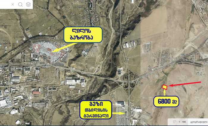 მიწის ნაკვეთი არის კახეთის გზატკეცილზე ლილოს ბაზართან სიახლოვეში. საკადასტრო კოდია 01.19.13.004.052. სურათზე წითლად მონიშნულ მიწის ნაკვეთზეა საუბარი.