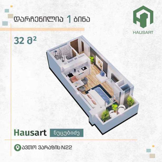 ქირავდება სტუდიოს ტიპის უცხოვრებელი ბინა ნუცუბიძეზე. ბინა აღჭურვილია საუკეთესო ხარისხის ავეჯითა და ტექნიქით. ქირავდება მინიმუმ ერთ წლიანი ხელშეკრულებით. დაინტერესების შემთხვევაში დამიკავშირდით 2 თვის წინასწარი გადახდით