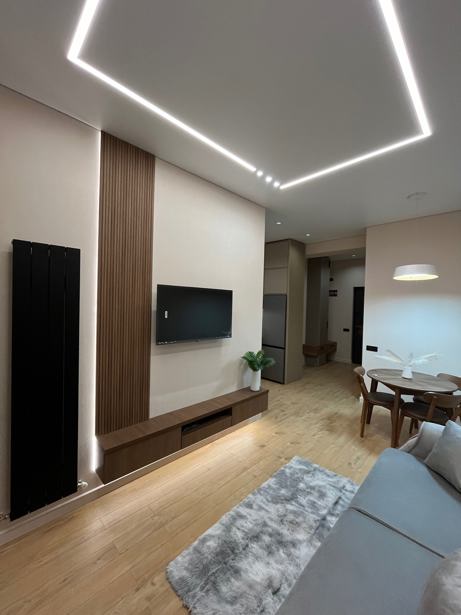 იყიდება 2-ოთახიანი, ახალი გარემონტებული ბინა ავეჯითა და ტექნიკით 58.1 კვ.მ ფართის მყუდრო და ნათელი ბინა მდებარეობს დიდ დიღომში, თეიმურაზ I-ის ქუჩაზე, ცენტრალური პარკის ეზოში, პრემიუმ კლასის ახალ აშენებულ საცხოვრებელ კომპლექსში. ბინა გამოირჩევა თანამედროვე, გემოვნებიანი რემონტით და სრულად მზადაა საცხოვრებლად — რაც ფოტოებში ჩანს, ყველაფერი რჩება. მოსაწყობად აღარაფერია საჭირო: სრულად გაწყობილი აბაზანა სარეცხი მანქანით კომფორტული და მოწესრიგებული საძინებელი დიდი, ნათელი სტუდიო ჩაშენებული სამზარეულოთი (მაცივარი, ჭურჭლის სარეცხი მანქანა, გაზქურა, გამწოვი) აივანზე ჩაშენებული სათავსო და ცენტრალური გათბობის ქვაბი კომპლექსის ერთ-ერთი მთავარი უპირატესობაა უნიკალური მდებარეობა — კორპუსი პირდაპირ ცენტრალურ პარკშია განთავსებული, აქვს დიდი დახურული ეზო და საპარკინგე სივრცეები, რაც მაქსიმალურ კომფორტსა და სიმშვიდეს უზრუნველყოფს.