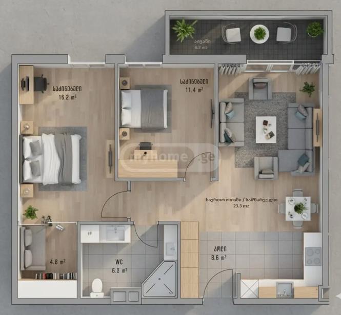 ქირავდება 3 ოთახიანი ბინა დიდ დიღომში