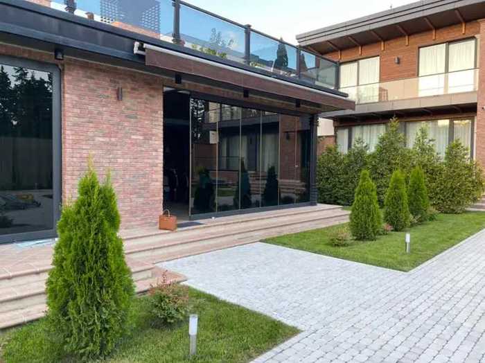 ულამაზესი დიზაინის სახლი. ძალიან ლამაზი 1400 კვმ გამწვანებული ეზოთი.უზარმაზარი ნაძვებით,ბარბექიუთი,დამხმარე შენობით,წყაროთი,ავტოფარეხით.სახლში არის ძალიან დიდი სივრცე ბარით,სტუდიოს ტიპის, ბუხრით და ცალკე სასადილო ოთახი. 5 საძინებელი,6 სველი წერტილი,მეორე სართულზე ცალკე მისღები.ყველანაირი ტექნიკა და ძვირადღირებული ავეჯი.სახლს აქვს შიდა სივრცის აივნები.ყველა ოთახში კონდიცირება.არის იატაკქვეშა გათბობა.ყველანაირი საჭირო ნივთი საცხოვრებლად.