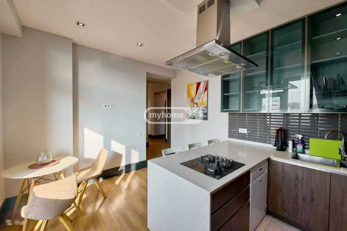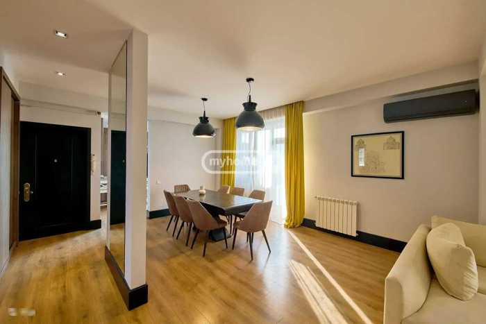 სამი საძინებელი, ცალკე სამზარეულო, მისაღები, სამი აივანი, ორი სველი წერტილი. საბურთალო, გაგარინის და შარტავას კვეთაზე.