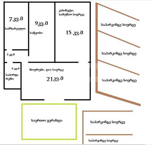 ქირავდება ბინა – 63 კვ.მ, რომელიც მდებარეობს ძალიან მშვიდ და გამორჩეულ უბანში. ადგილი არის წყნარი და კომფორტული, ამასთანავე ქალაქის ცენტრამდე მანქანით რამდენიმე წუთში არის შესაძლებელი მისვლა, ახლოს მდებარეობს საზოგადოებრივი ტრანსპორტის გაჩერება. ბინა მდებარეობს პირველ სართულზე და აქვს პატარა კერძო ბაღი წინა მხარეს, რომელიც ბინის ნაწილია. ბინას აქვს ორი შესასვლელი — ერთი ბაღიდან, ხოლო მეორე სადარბაზოდან . ბინის განლაგება მოიცავს: ერთ საძინებელს ასევე მეორე ოთახს, რომელიც იდეალურია როგორც სამუშაო ოთახი / ოფისი. სრულად აღჭურვილ სამზარეულოს, სადაც არის სარეცხი მანქანა, ჭურჭლის სარეცხი მანქანა და მაცივარი. უბანი არის მშვიდი, მწვანე და ძალიან სასიამოვნო საცხოვრებლად.