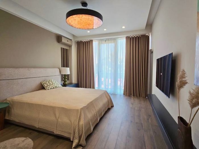 ქირავდება ახალი, ძვირადღირებული ბინა ვაკის ცენტრში. 8/10 სართული პრემიუმ დომუსის კორპუსში. ფართო 160 კვ.მ მოიცავს სტუდიოს ტიპის მყუდრო მისაღებ ოთახს, 3 საძინებელს (1 გასაშლელი დივანით), 2 სველ წერტილს და აივანს. სრულად კეთილმოწყობილია და აღჭურვილია პრემიუმ კლასის ავეჯით და ტექნიკით.