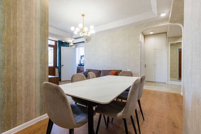 ბინა არის ახლად გარემონტებულ, მოწესრიგებულ კორპუსში, ჩიპიანი კარით. კორპუსშია ახალ ლიფტები და რეგულარული დასუფთავების სერვისი. 2 თვის წინასწარ გადახდის პირობით