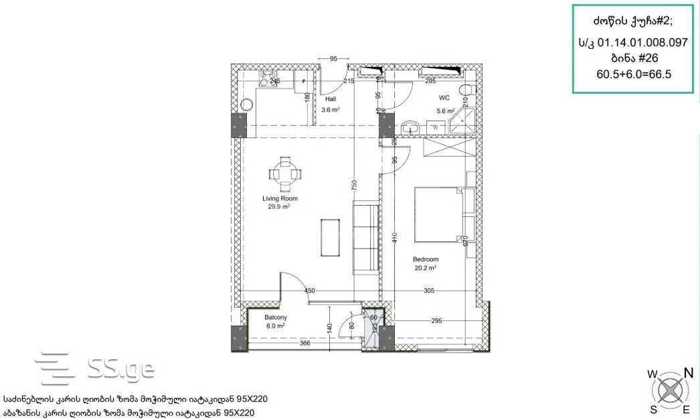 იყიდება, 66.5 მ2, ორ ოთახიანი ბინა, მწვანე კარკასის კონდიციით (დაქსელილია ელექტროობა, გათბობა, სამზარეულოს სანტექნიკა, დასხმულია სწიაშკა და გალესილია კედლები). ბინა მდებარეობს თეთრი კვადრატის კორპუსში, ძოწის ქუჩაზე (მინდელის ქუჩის კვეთასთან). მშენებლობა დასრულებულია. მიმდინარეობს შიდა სამუშაოები და ფასადის შეღებვა.