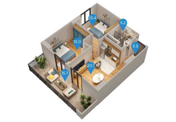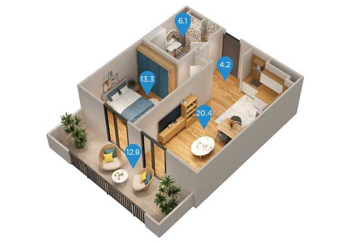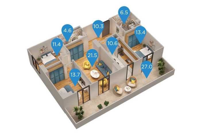 კომპლექსში კომფორტული საცხოვრებელი სახლების გარდა გათვალისწინებულია: ევროპული სტანდარტების ფიტნეს დარბაზი და ღია აუზი, ლობი და კონსიერჟის მომსახურება, კაფეები, სუპერმარკეტი, აფთიაქი და სხვადასხვა სავაჭრო ობიექტი