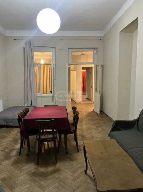 ქირავდება არასტანდარტული პროექტის ბინა ძველ აშენებულ სახლში, 110 კვ.მ ფართობით. ბინა მდებარეობს ორსართულიანი სახლის მეორე სართულზე და მოიცავს 3 ოთახს, მათ შორის 2 საძინებელს. ბინაში არის დიდი ფანჯრები, რაც უზრუნველყოფს ბუნებრივ განათებას და სიმყუდროვეს. ორი აივანი დამატებით სივრცესა და კომფორტს ქმნის. მისაღები და სასადილო ოთახი გამოყოფილია, სამზარეულო და სარეცხი ოთახი კი ფუნქციურადაა მოწყობილი. საძინებლები აღჭურვილია ჟალუზებითა და ფარდებით, იატაკი ხის მასალითაა დაფარული. აბაზანა და სველი წერტილი სარეცხი ოთახთან ახლოსაა განთავსებული. ეს ბინა იდეალურია მათთვის, ვისაც სურს მყუდრო და ნათელ გარემოში ცხოვრება.