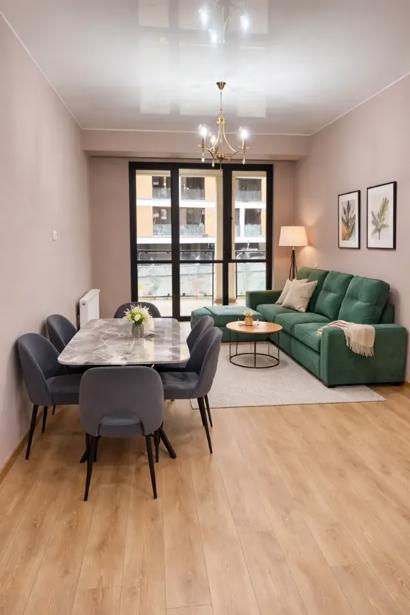 ქირავდება ახალი აშენებული ბინა მონოლით გრინი სითიში 87 კვ.მ რომელიც მდებარეობს 12-სართულიანი კორპუსის მე-9 სართულზე. ბინაში არის 3 ოთახი, მათ შორის 2 საძინებელი სტუდიოს მისაღები და ერთი აივანი, რომელიც უზრუნველყოფს დამატებით სივრცეს დასვენებისთვის. 🥰 ბინა გამოირჩევა თანამედროვე დიზაინითა და ნათელი ინტერიერით, რაც ქმნის მყუდრო და სასიამოვნო ატმოსფეროს. ახალი შენობა უზრუნველყოფს უსაფრთხო და კომფორტულ საცხოვრებელ გარემოს. იდეალურია მათთვის, ვინც აფასებს სიმშვიდესა და თანამედროვე სტანდარტებს.