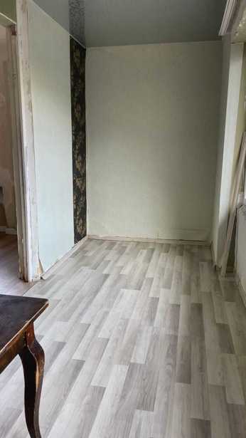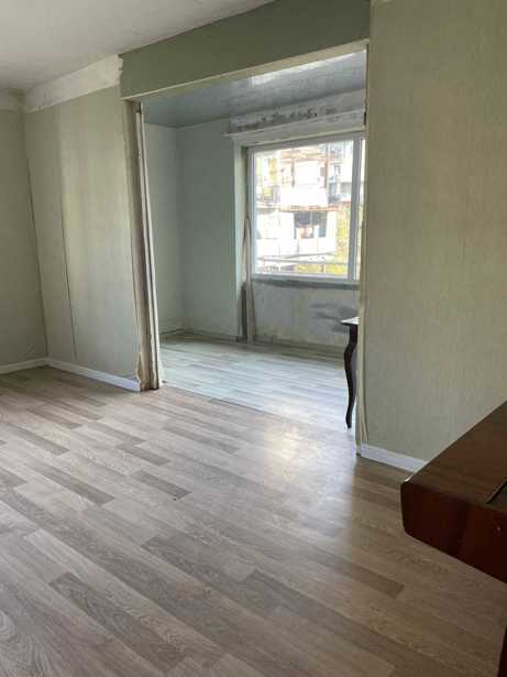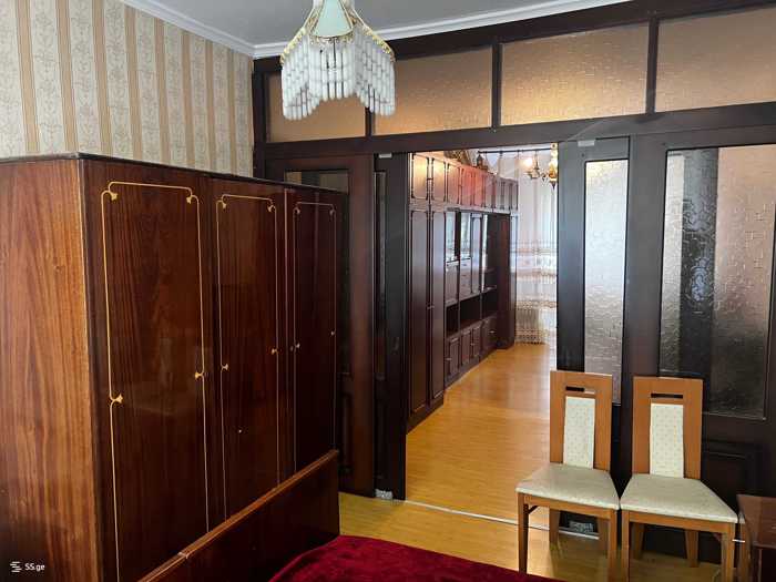იყიდება. ბინაში რჩება ავეჯი და ტექნიკა ორი დიდი ოთახის მიშენების პერსპექტივით.