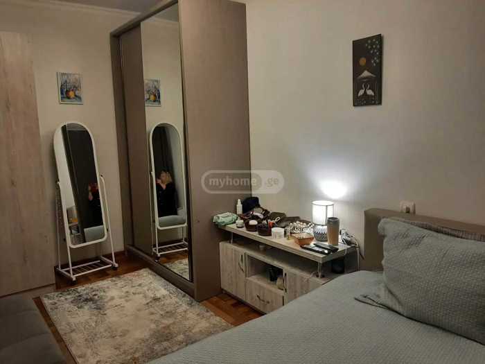 ქირავდება ბინა ჩეხური პროექტის ძველ აშენებულ კორპუსში, 8-ე სართულზე, 9-სართულიან შენობაში. საერთო ფართობი 55 კვ.მ. ბინაში არის ერთი ოთახი და ერთი საძინებელი, რაც იდეალურია მყუდრო და მშვიდი ცხოვრებისათვის. ბინას აქვს ხის იატაკი, რომელიც სითბოსა და კომფორტს ანიჭებს ინტერიერს. მისაღები ოთახი და სასადილო სივრცე ნათელია დიდი ფანჯრის წყალობით. ასევე, ბინას აქვს ერთი აივანი, საიდანაც იშლება ხედები. 2 თვის წინასწარ გადახდით