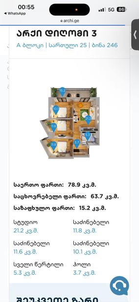 იყიდება არქი დიღომი 3 A ბლოკში მწვანე კარკასის მდგომარეობაში.
