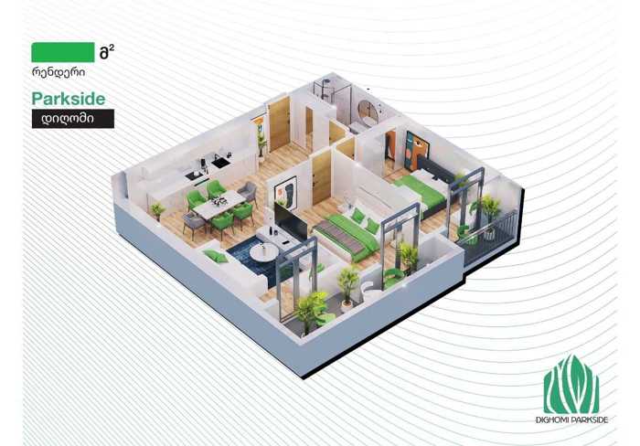 ქირავდება 3 ოთახიანი ბინა დიდ დიღომში