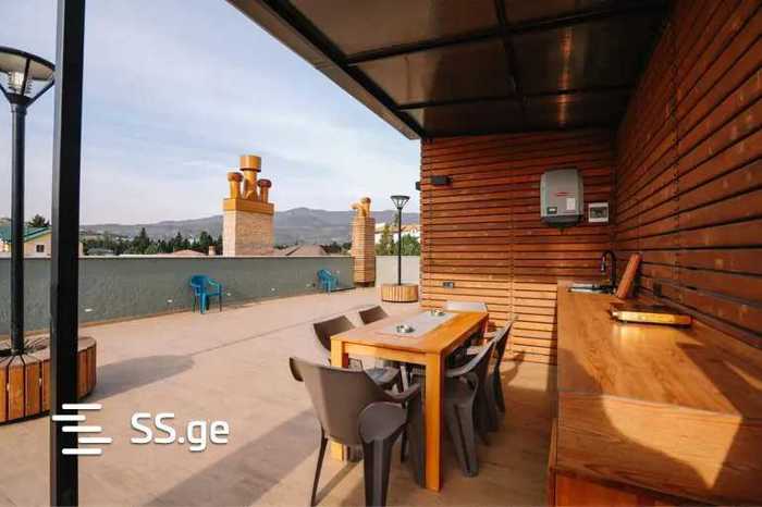 ქირავდება ახალი აშენებული, ოფიციალურად დარეგისტრირებული და ექსპლუატაციაში შეყვანილი, თანამედროვე დიზაინის მქონე,მრაცალფუნქციური,კეთილმოწყობილი საცხოვრებელ დასასვენებელი კომპლექსი, რომელიც შედგება: 1. ორი იზოლირებული საცხოვრებელის სახლისგან 2. 10x5 საცურაო აუზი 3. ეზოში მდგარი დამხმარე შენობა ნაგებობა 4. ორი დამოუკიდებელი ავტოფარეხი საცხოვრებელი სახლი მოიცავს ორ იზოლირებულ ბინას (განლაგებული სარკისებრი პრინციპით) თითოეულ შედგება 4 საძინებლისგან, პირველ სართულზე დიდი მისაღებისგან (88კვ.მ) , ჩაშენებული იტალიური სამზარეულოთი, ყველა სახის საყოფაცხოვრებო ტექნიკით და მესამე სართულზე პანორამული ტერასით. ეზოში მდგარი დამხმარე შენობანაგებობა 120კვ.მ, შედგევა მარანისგან, სატრაპეზოსგან, ფიტნეს, საუნა და დამხმარე პერსონალის ოთახისგან. მისამართი: სოფელი დიღომი, სარგის კაკაბაძის ქუჩა. დამატებითი დეტალებისთვის დამიკავშირდით📱 598 157 144 ლიკა / WhatsApp / Telegram | GEO ✅ ENG ✅