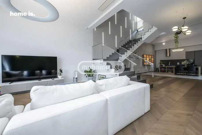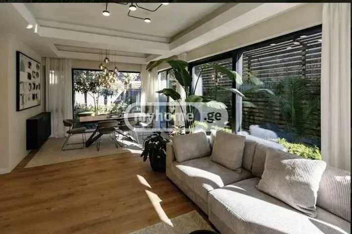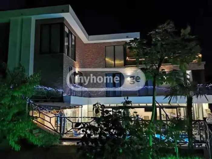 სახლი აშენებულია უმაღლესი ხარისხის მასალებით. გამოყენებულია ენერგოეფექტური ალუმინის კარ-ფანჯრები და შესრულებულია სრულყოფილი თბოიზოლაცია, რაც უზრუნველყოფს კომფორტს და დაბალ კომუნალურ ხარჯებს. ინტერიერში ძირითადად გამოყენებულია ბუნებრივი მასალები: იატაკი მოპირკეთებულია მარმარილოთი და მუხის პარკეტით. კეთილმოწყობილი და გამწვანებული ეზო, საცურაო აუზთან ერთად, ქმნის სიმყუდროვესა და იდეალურ გარემოს თქვენი ოჯახის დასვენებისთვის.