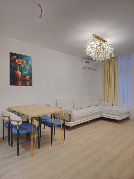 1+1 49,2 კვ 12 ეтажი ნახვა ზღვაზე 1 ხაზი ახალი ხარისხიანი რემონტი, ავეჯი, შინაური ტექნიკა ბინა ფართო, ნათელი 83.000$