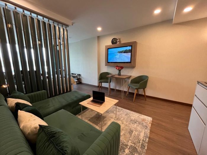 ფართო სტუდია ინდივიდუალური რემონტით ELT კვარტალში. კომპლექსში ამ ბინის ანალოგი არ არსებობს. ის მდებარეობს კომფორტულ სართულზე, აივნით, რომელიც გადაჰყურებს მთებს. ბინა სრულად არის აღჭურვილი ყველა საჭირო ავეჯით და საყოფაცხოვრებო ტექნიკით. ეს არის პრემიუმ სასტუმრო და საცხოვრებელი კომპლექსი კარგად განვითარებული ინფრასტრუქტურით: გარე და დახურული აუზები, სპა ცენტრი, ფიტნეს ოთახი, კაფე და სხვა კეთილმოწყობა შენობაში. იგი განკუთვნილია როგორც საცხოვრებლად, ასევე გაქირავებისთვის. ლოტი 4986tr