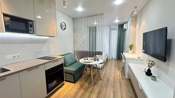 იყიდება უნიკალური სტუდია ცისარტყელას კომპლექსში სტუდია დამზადებულია ძვირადღირებული დიზაინერის რემონტით თანამედროვე კლასიკის სტილში. გაფორმებაში გამოიყენება ფლეში დამონტაჟებული კარები, მინის დანაყოფი, კვარცის ვინილი, რომელიც ჩაუყარა "ფრანგულ ნაძვის ხეს", ცილინდრული კაპოტი და ფარული სანტექნიკა. აბაზანას აქვს თბილი იატაკი და თბილი კედელი, ხოლო მრავალ დონის განათება და ჩრდილის პროფილი ქმნის კომფორტისა და ელეგანტურობის ატმოსფეროს. საწოლი აღჭურვილია ამწევი მექანიზმით. სტუდია სრულად აღჭურვილია ავეჯით და საყოფაცხოვრებო ტექნიკით: ჭურჭლის სარეცხი მანქანა, ჩაშენებული ღუმელი და მიკროტალღური ღუმელი, ინდუქციური ღუმელი, ტელევიზორი ხელოვნური ინტელექტით. ფანჯარა გთავაზობთ მთების პირდაპირ ხედს. ზღვა მხოლოდ 200 მეტრშია. ეს არის იდეალური როგორც პირადი საცხოვრებელი და საინვესტიციო. ლოტი 4111ac