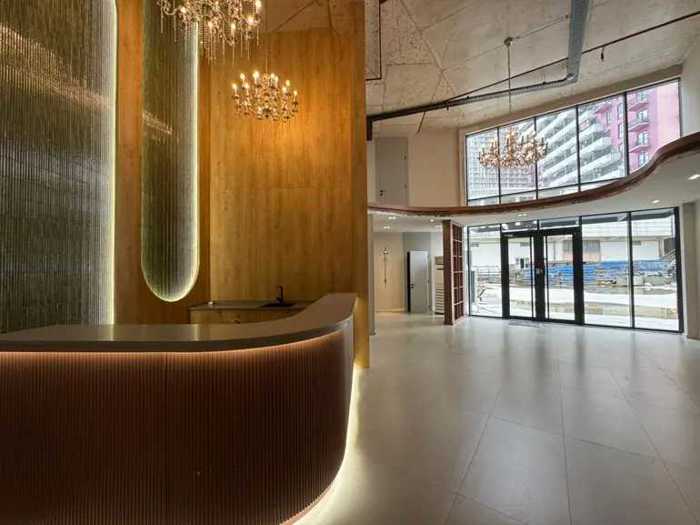 9 სართული 69 ოთახი 1 ლიფტი 1 რესეფშენი 1 კომერციული ფართი 500კვ.მ. 2 რესტორანი 260 ადამიანზე. საერთო გათბობაგაგრილების სისტემა სულ 3600 კვ.მ.