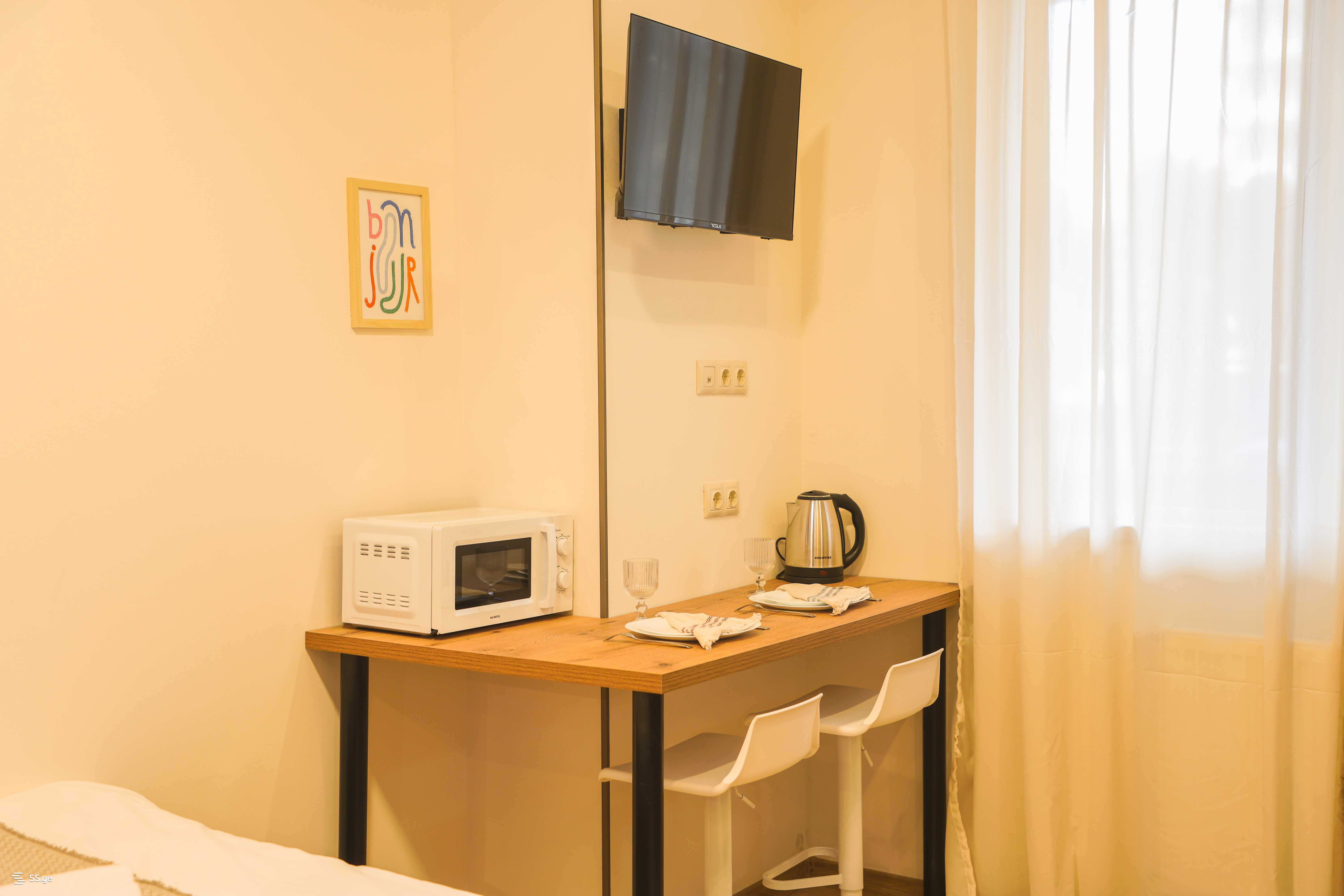 - სარეცხი მანქანა, მაცივარი, ინდუქციური გაზქურა, მიკროტალღური ღუმელი;