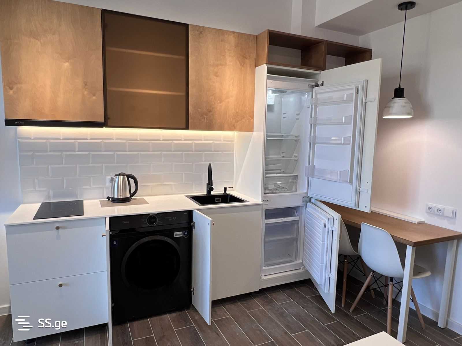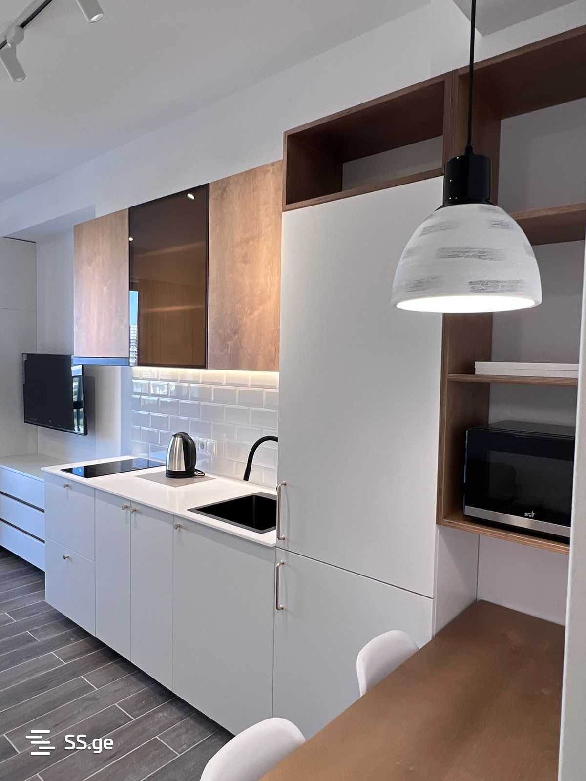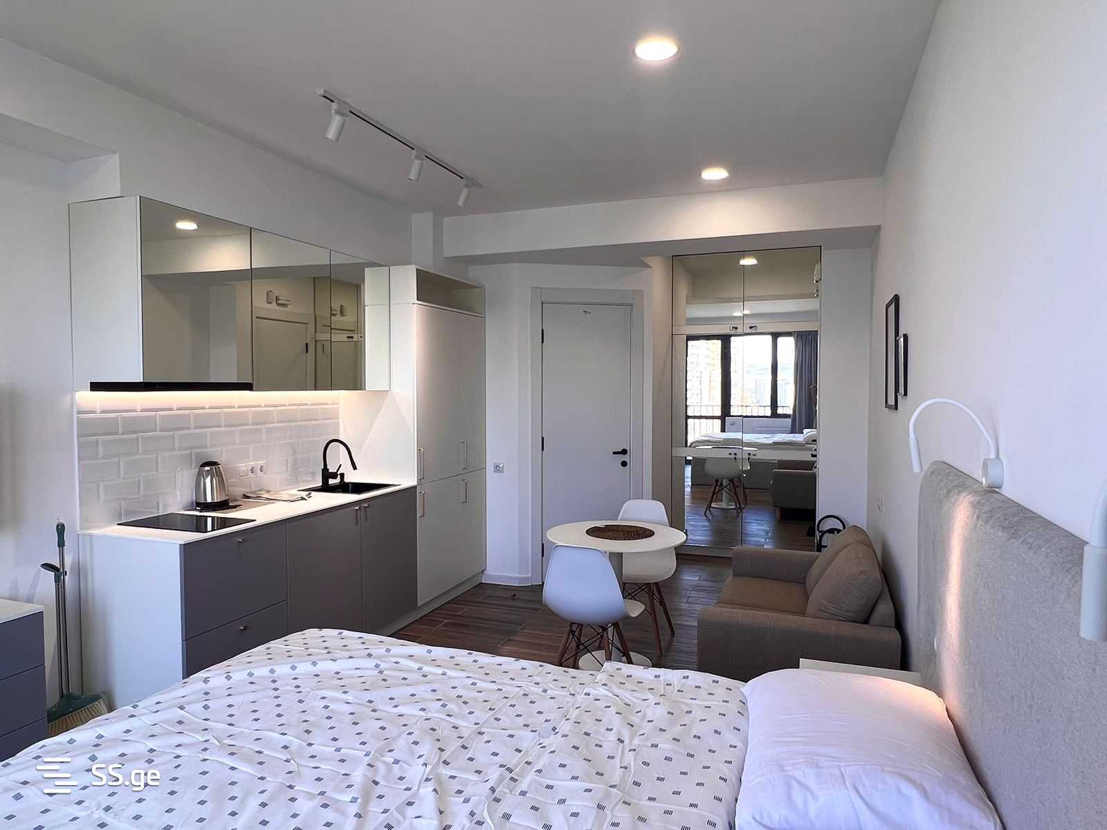 სტუდიო 30მ2 ახალ კორპუსში ახალი რემონტით, რომელსაც აქვს ყველაფერი. პატარა, მაგრამ ძალიან კომფორტული სამზარეულო, ელექტრო ღუმელი გამწოვით, ჩაშენებული მაცივარი, კარადები, კონდიციონერი, რომელიც მუშაობს როგორც გათბობაზე, ასევე გაგრილებაზე; ტელევიზორი, ინტერნეტი, ცენტრალური გათბობა. ავეჯი დამზადებულია შეკვეთით, ძალიან კომფორტული ძვირადღირებული. თანამედროვე აბაზანა: "მონტაჟი", კომფორტული საშხაპე, ყველა სარკე უკანა განათებით. ჩვენ სპეციალურად ვიყიდეთ ძვირადღირებული, ზომიერად მძიმე ორთოპედიული ლეიბი ჯანსაღი ძილისა და ზურგის მოვლისთვის. ბინა ქირავდება თეთრეულით, ჭურჭლით, ტექნიკით, უთოთი, საუთაო დავით. ძალიან მშვიდი მეზობლები. ბინა მდებარეობს გოწერიძის მეტროდან დაახლოებით ას მეტრში, ფეხით არანაკლებ წუთის სავალზე, ხოლო მეტროთი ცენტრამდე 10 წუთის სავალზე. ერთი თვის წინასწარ გადახდა, ასევე მცირე დეპოზიტი, ბრუნდება გამგზავრების შემდეგ. მოხარული ვიქნებით, რომ გვეყოლება სასიამოვნო მოიჯარე.
