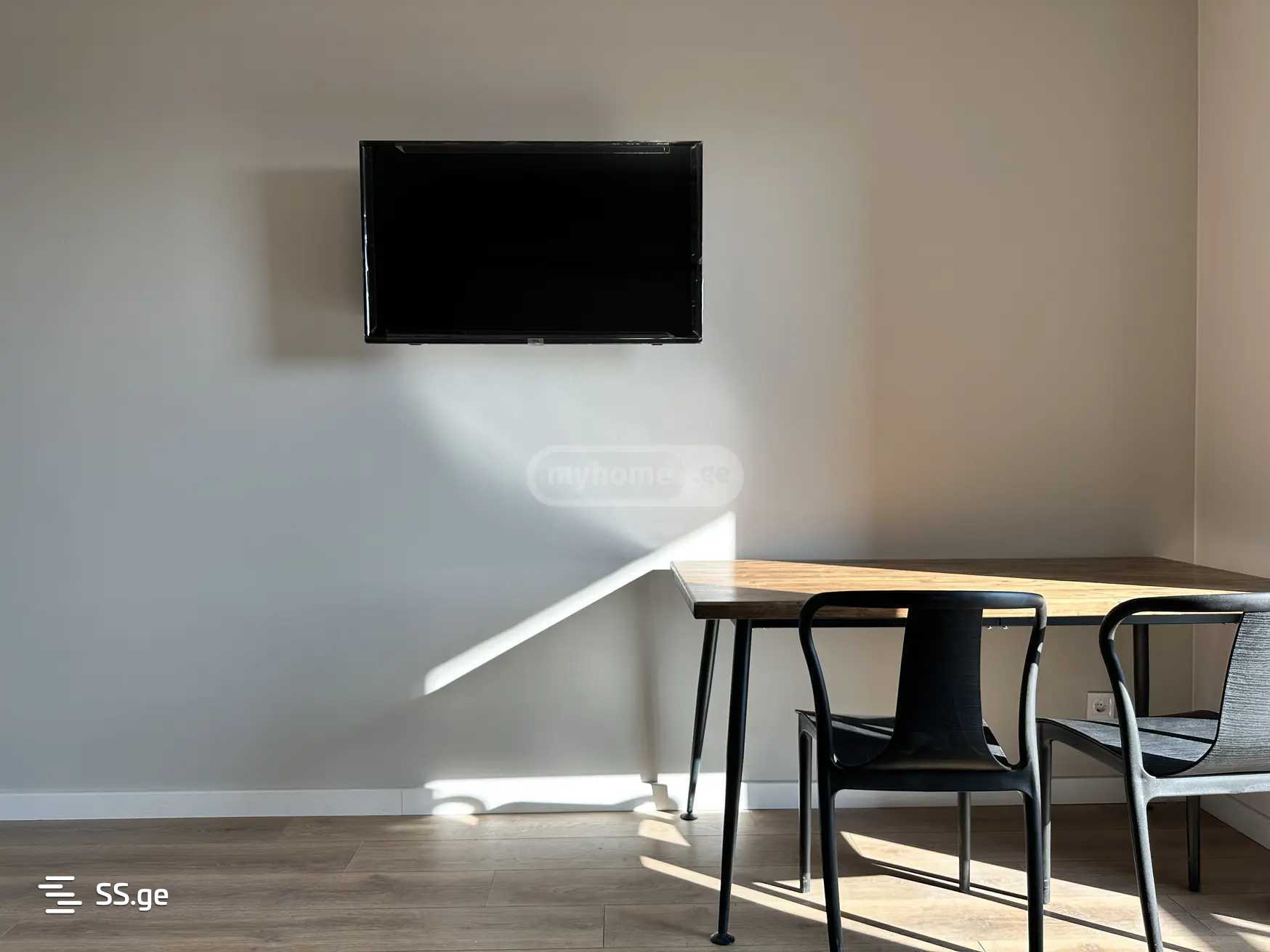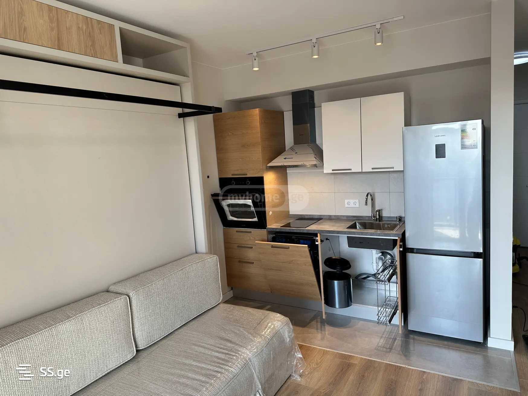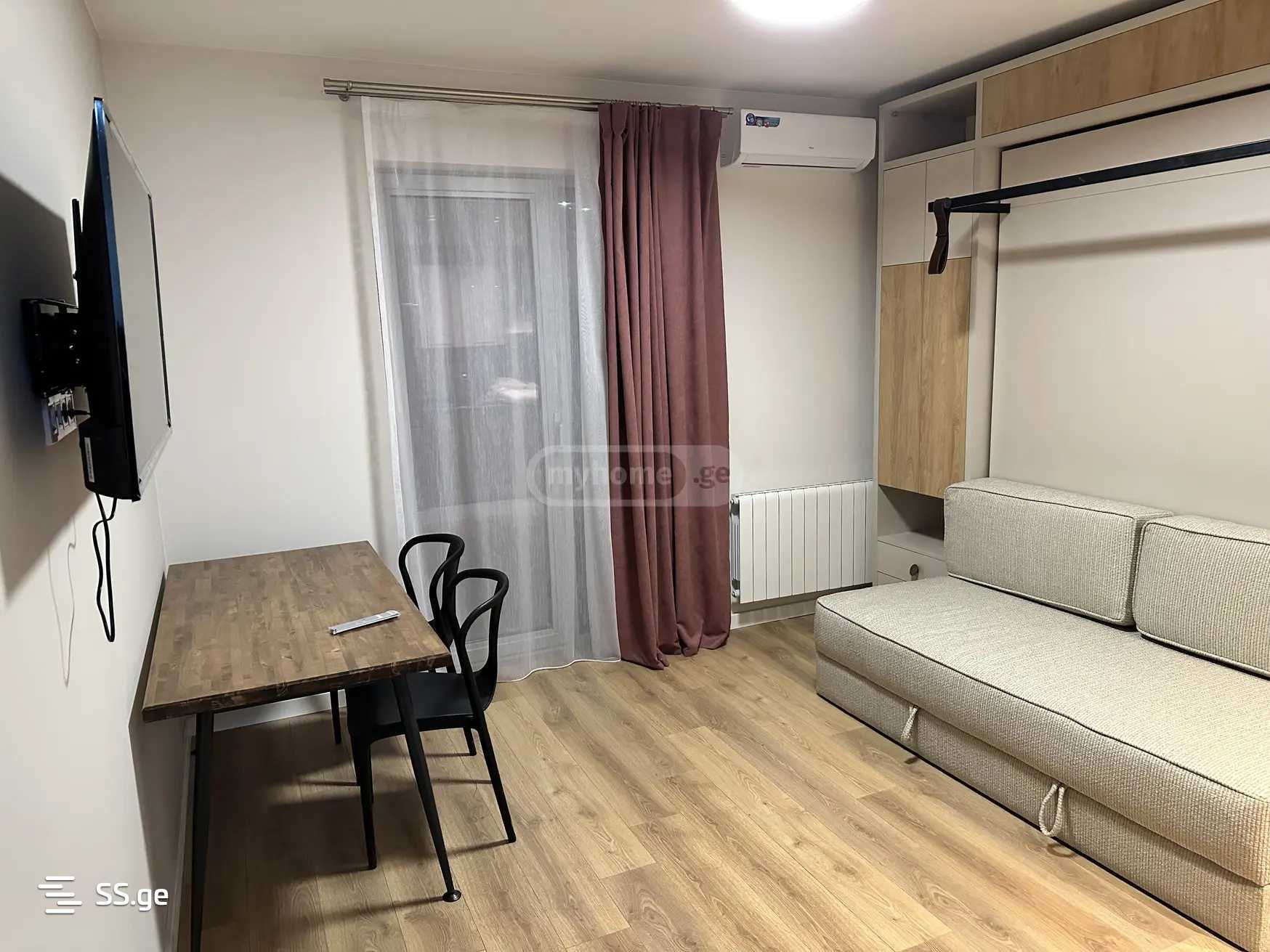 M2 ში ბინა სრულად კეთილმოწყობილი, უახლესი ტექნიკით და ჩაშენებული ავეჯით. ჭურჭლის და სარეცხი მანქანა( საშრობით), ღუმელი, მიკროტალღური, კონდენციონერი, მაცივარი, ცენტრალური გათბობა ტელევიზორი. 1) ნატურალური არყის ხის სამუშაო მაგიდა 2) 3 სკამი 3) აივნის მაგიდა 4) დივანი 5) ტრანსფორმერი საწოლი ძალიან პრაქტიკულს ხდის სივრცის გამოყენებას. ტერიტორიას საცხოვრებელი ზონა დაცულია. პირველი და ბოლო თვის წინასწარი გადახდით, სერვისის გადასახადი -35ლ