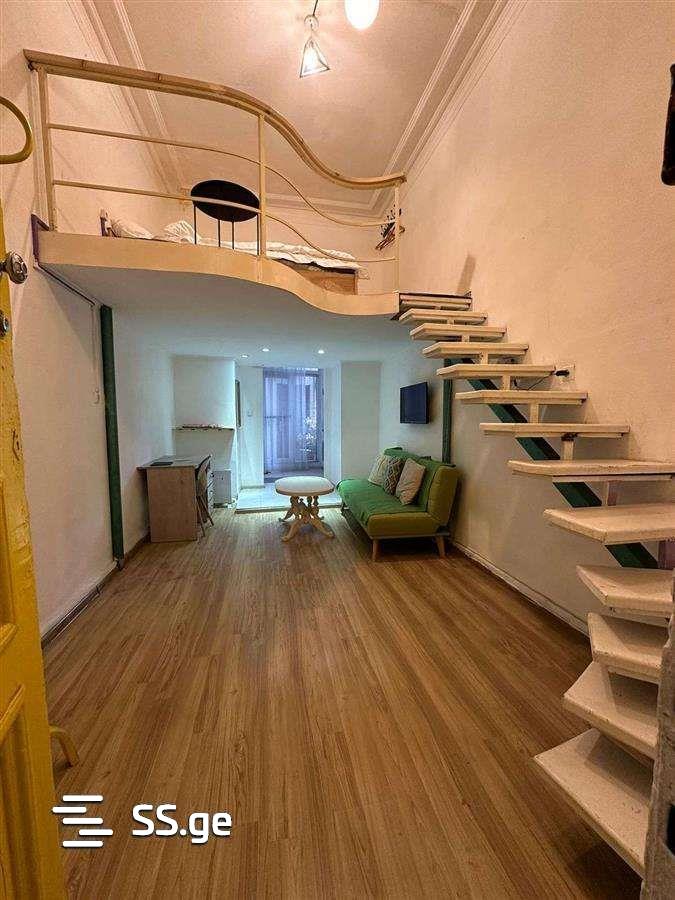 ქირავდება ბინა რუსთაველის გამზირზე. ძირითადი ფართი 23 კვმ. ცალკე გამოყოფილი სამზარეულოს კუთხე და სველი წერტილი და ანტრესოლით გამოყოფილია საძინებელი (7 კვმ..). იდეალურია ერთი ან მაქსიმუმ 2 ადამიანისთვის. შესასვლელი სადარბაზოდან, ხედი შიდა ეზოზე. უკანა მხრიდან აქვს პატარა აივანი, საერთო 2 მეზობელთან. არის წყნარი ეზო, ნათელი ოთახი. გათბობა: კონდიციონერი და დამატებით ელექტრო ღუმელი. 2 თვის წინასწარი გადახდით