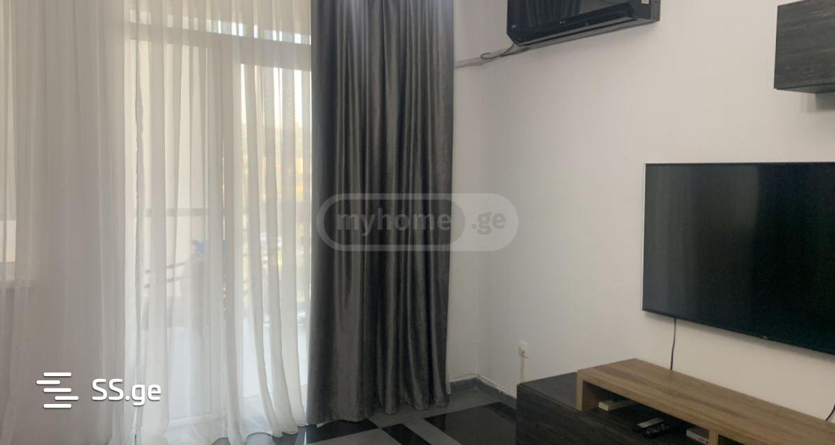 ქირავდება 2 ოთახიანი სტუდიოს ტიპის ბინა დიდი შემინული ვერანდით, სრულად აღჭურვილი სამზარეულო ტექნიკით და ავეჯით. ბინა ქირავდება კონტრაქტის საფუძველზე,მინიმუმ 6 თვით.