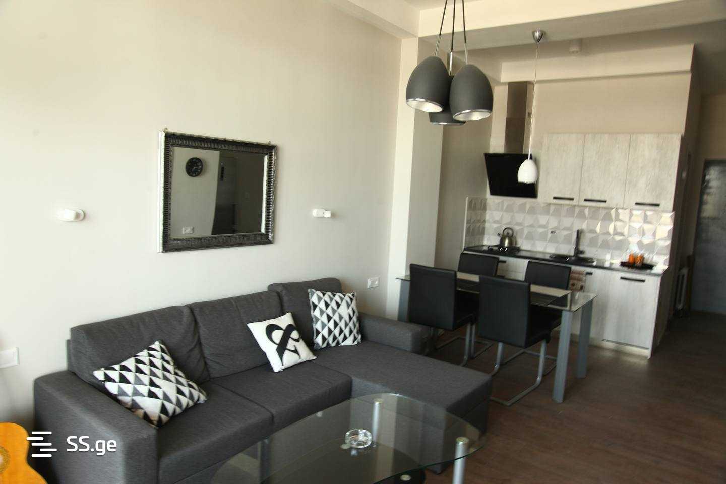 თანამედროვე ბინა კარგი ხედებით, ავეჯით, ტექნიკით, ტერასით, ბუხრით, შარტავას 37-ში, კორპუსში ყველა მარკეტით.