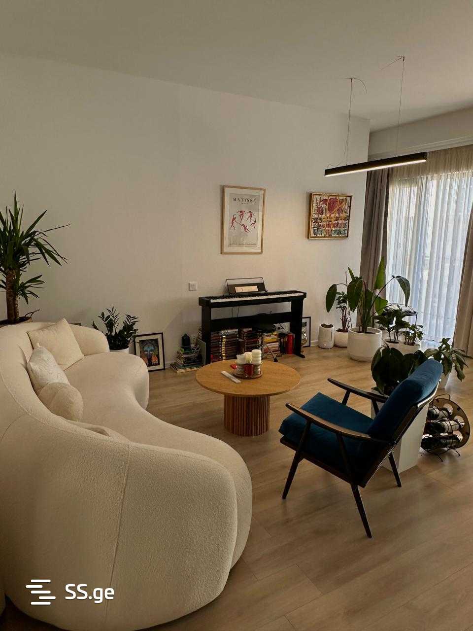 ბინა არის 65 კვ. მ. მდებარეობს შროშის ქუჩაზე, 12 სართულიანი კორპუსის ბოლო, მე-12 სართულზე.