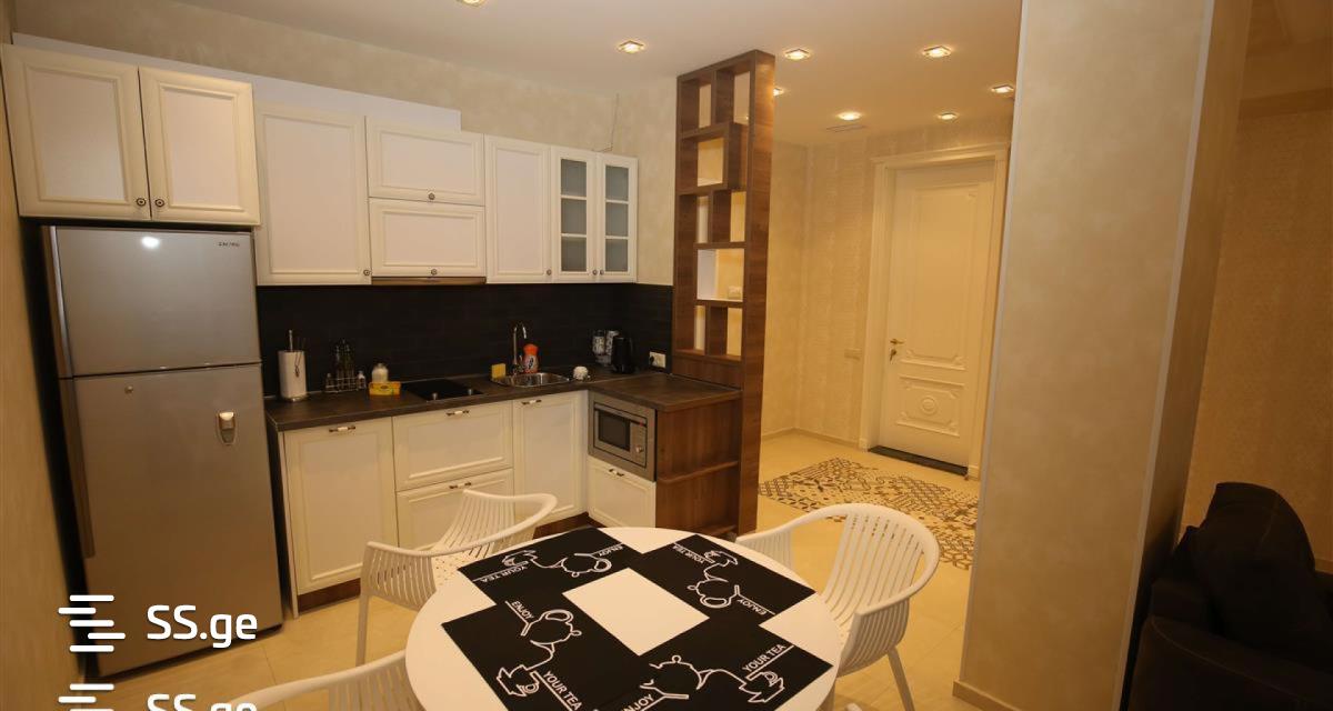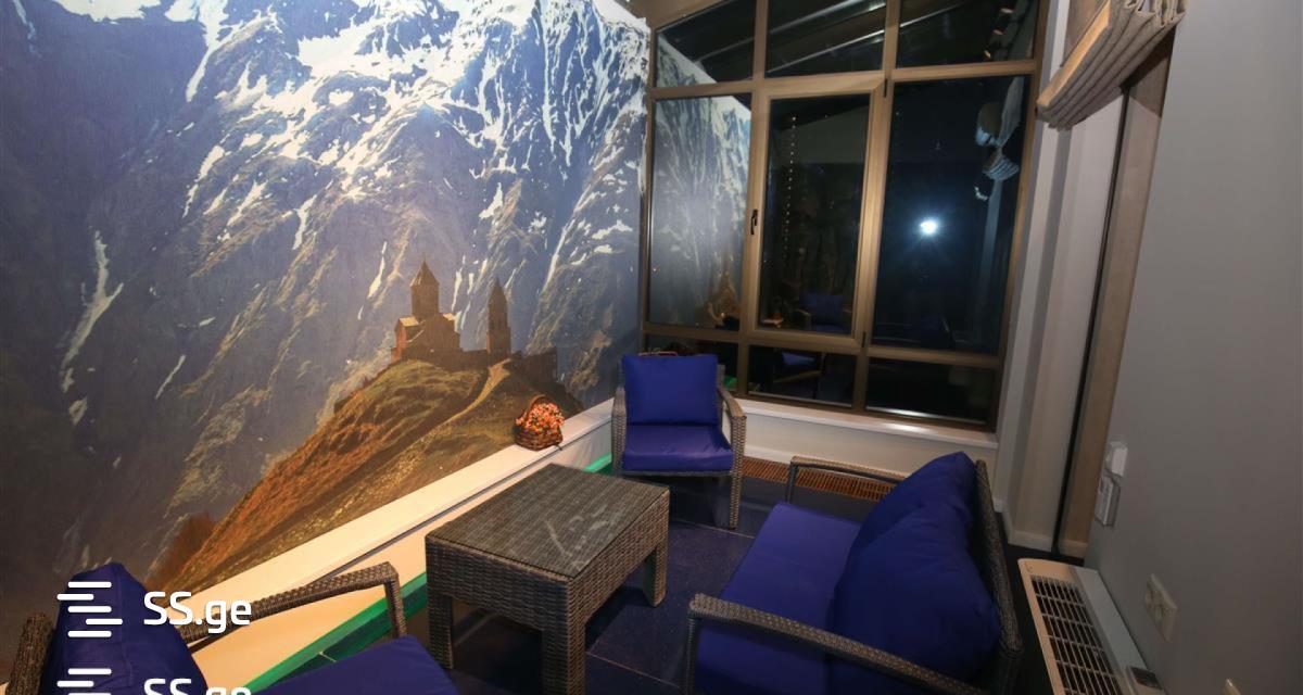 უმაღლესი კლასის ბინები უახლესი რემონტით, მაქსიმალური კომფორტით და მრავალფეროვნებით. მისი დიზაინი უნიკალურია და გამოირჩევა ინტერიერის ორიგინალური და განსხვავებული ელემენტებით. (ზამთრის ბაღი, მდიდრული აბაზანა, სრულად აღჭურვილი სამზარეულო...) საცხოვრებელი • ფართი - 130 კვ.მ. • საძინებელი - 2 (A/C და Smart TV) • აბაზანა - 1 • სამზარეულო სრული ტექნიკით • ზამთრის ბაღი