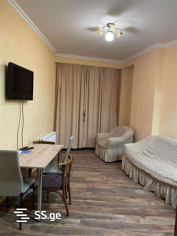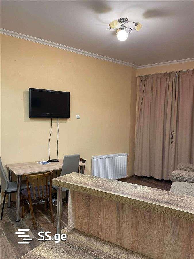2 ოთახიანი, კეთილმოწყობილი, ავეჯით აღჭურვილი, მყუდრო ბინა ქალაქის ცენტრში, ეკოლოგიურად სუფთა, წყნარ უბანში, მრგვალი ბაღის მიმდებარედ. კორპუსი 8 სართულიანია.